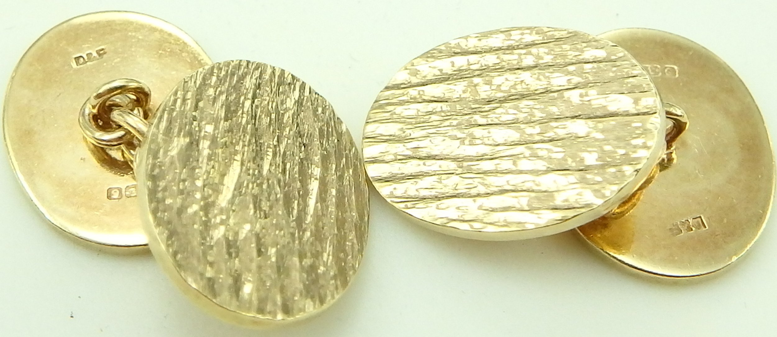 Vintage 1973 Deakin & Francis 9ct carat solid yellow gold cuff links 12.2 grams.