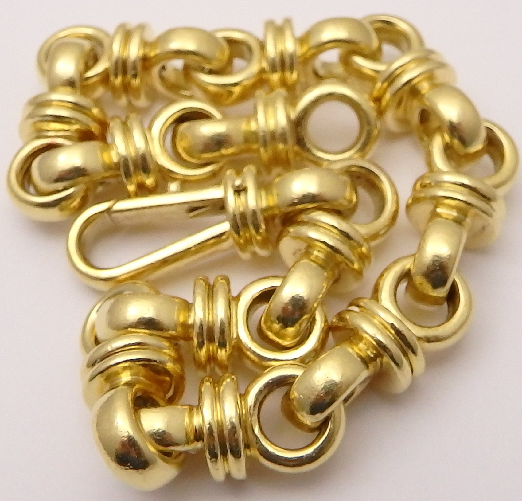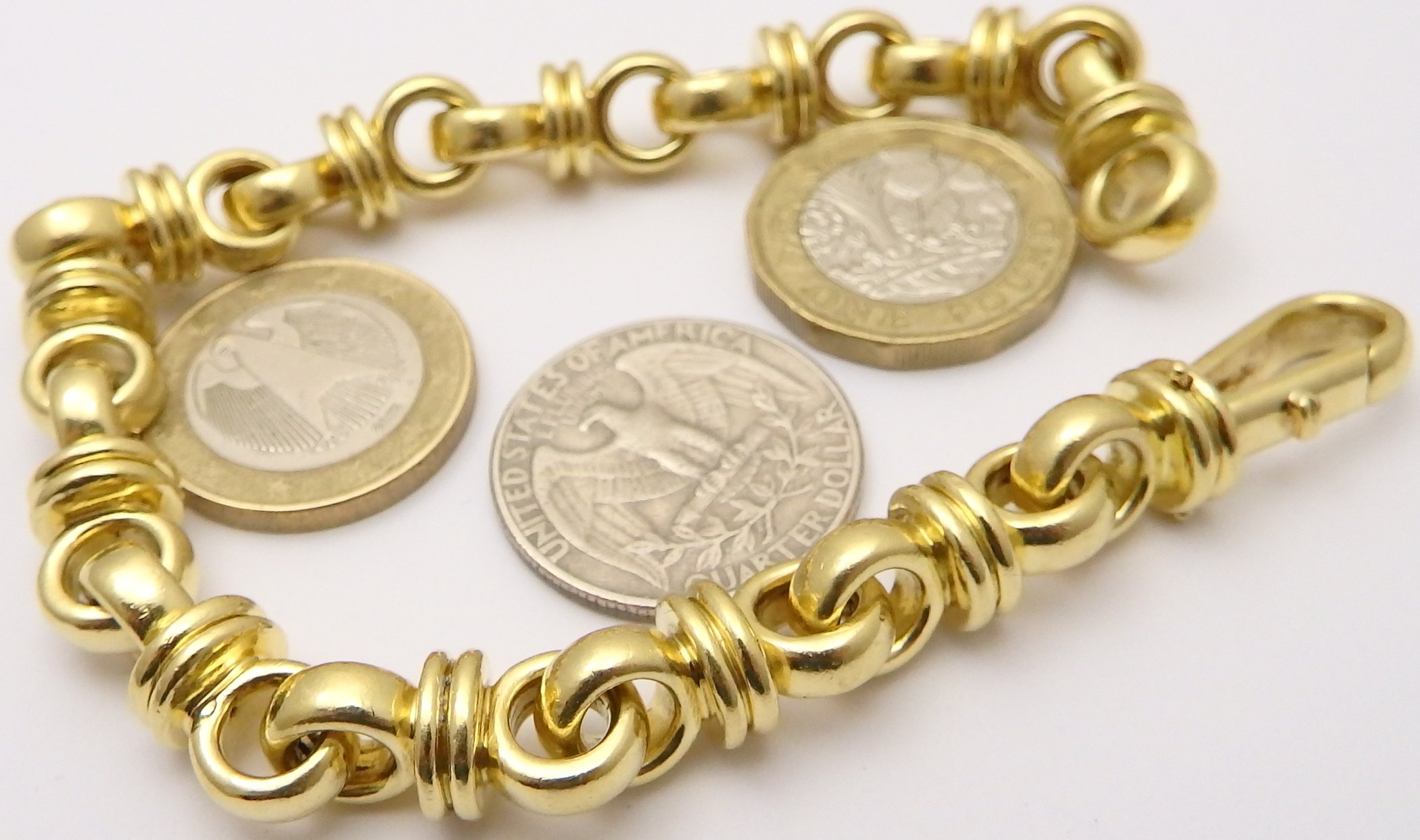 Heavy 18ct. 105 gram solid yellow gold vintage bracelet 8.75 inches long