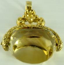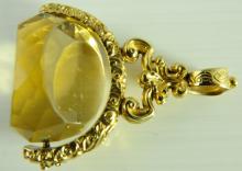 Large antique yellow gold plated swivel watch fob with faceted citrine, cairngorm stone