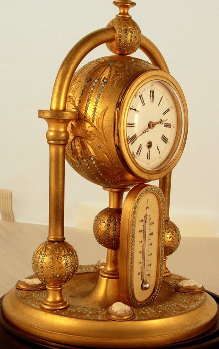 Antique gilt clock with thermometer and cameos