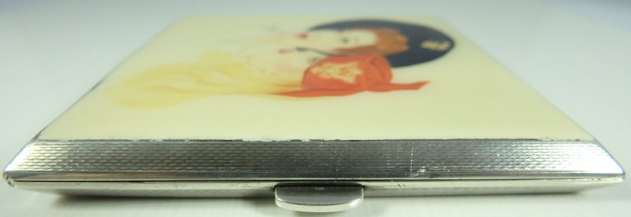 Antique silver enamelled cigarette case W.T.T & Co. Birmingham. Hallmarked 1947