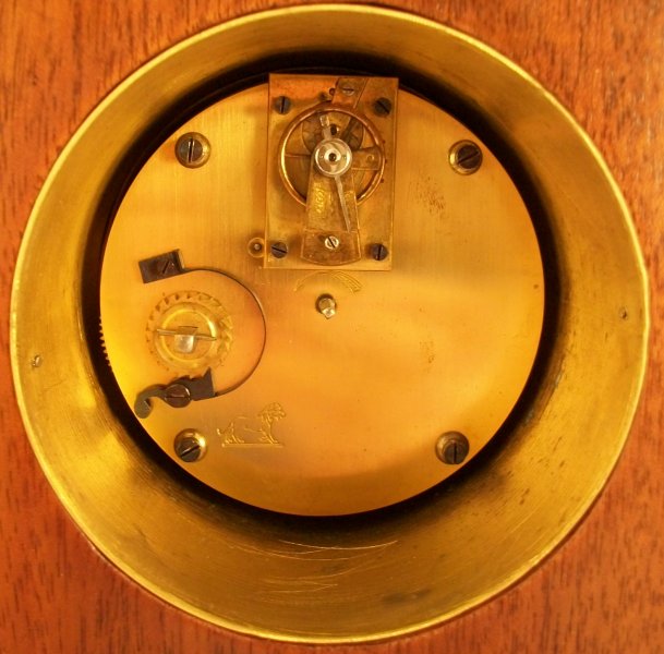 U.K. Circa 1910. 8-Day timepiece movement with platform escapement. In full working order. This clock is time only, no strike. It doesn't use a pendulum, it has a platform escapement like a carriage clock. Height: 10.25in. (26cm) Width: 6.75 in. (17.15 cm), Depth: 4 in. (10.16 cm)